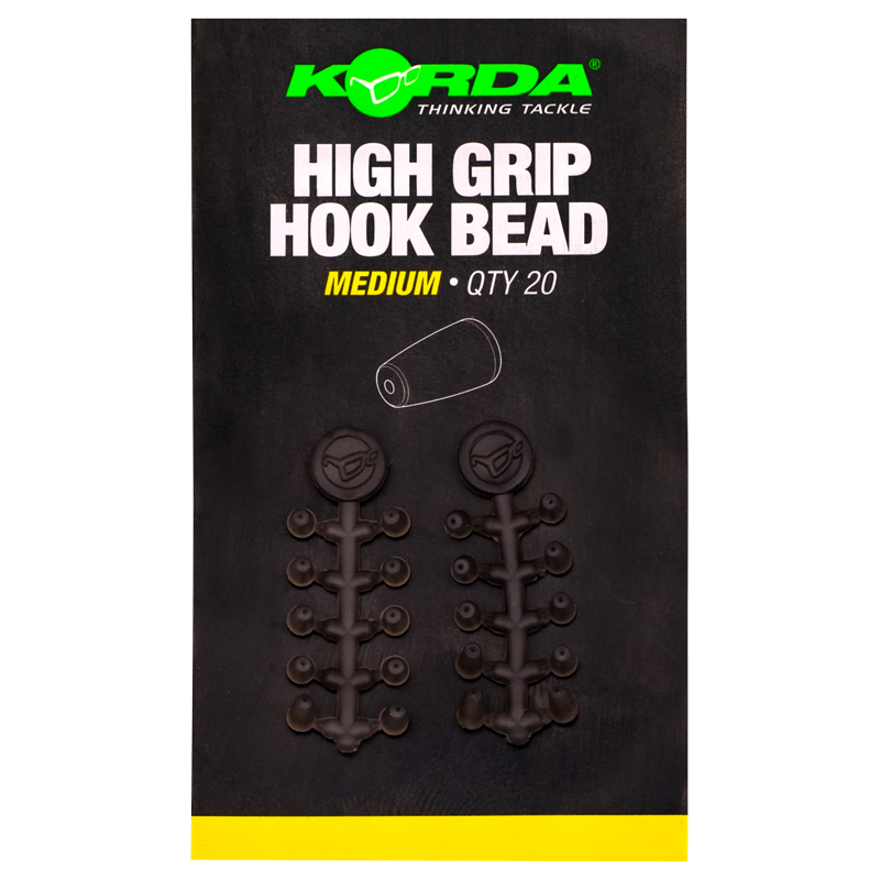 Unsere speziell entwickelten High Grip Hook Beads haben eine vergrößerte Oberfläche, was bedeutet, dass ein großer Prozentsatz der Oberfläche der Perle in Kontakt mit dem Schaft des Hakens ist. Dieses Designmerkmal sorgt dafür, dass die High Grip Hook Beads bei großen Hakenködern und beim Werfen auf große Entfernungen nicht verrutschen. Die glatte, konisch zulaufende Form des Wulsts ermöglicht es, dass er so klein wie möglich bleibt und gleichzeitig seine Griffigkeit beibehält. Die Größe Medium wurde entwickelt, um einen Medium Micro Ring Swivel (oder Medium Bait Screw Swivel) auf dem Hakenschaft zu halten und so eine Vielzahl von Köderpräsentationen zu ermöglichen.