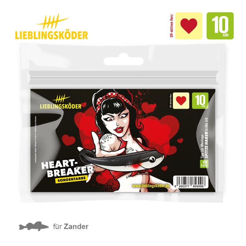 Unser Gummifisch Heartbreaker hat sehr natürliche Farben. Der Rücken des Angelköders ist gräulich und halbtransparent, der Bauch ist stark transparent. Als besonderes Highlight hat der Gummiköder ein UV-aktives Herz eingegossen, wie es gerade bei kleinen Brutfischen oft zu sehen ist. Diesen Leckerbissen empfehlen wir für klare Gewässer sowohl bei leicht bedecktem Himmel als auch bei Sonnenschein.
