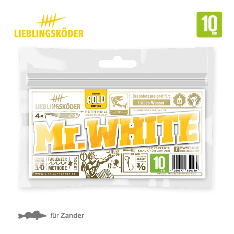 Der Gummifisch Mr. White ist mit seiner weißen Grundfarbe für trübe Gewässer und bewölkten Himmel geeignet. Beim Gummiköder Mr. White ging es um ein passendes Gegenstück zum Gummiköder Mr. Black - beide zusammen sind eure Allrounder für jedes Wetter.