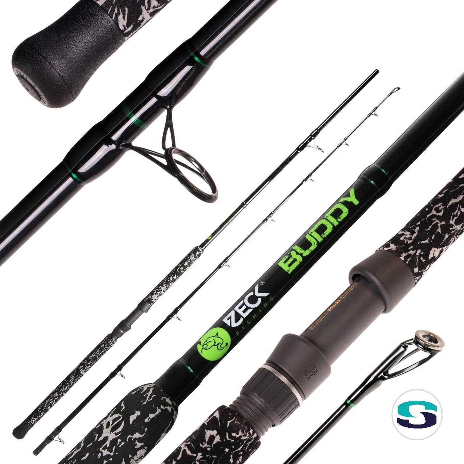 Woran konnten wir jetzt aber sparen? Die Idee, die wir letztendlich auch umsetzen konnten, bestand darin, einen modernen Blank mit hohem Glasfaseranteil zu entwickeln. Da dieser Rohstoff bedeutend günstiger ist als Kohlefaser, können wir die Buddy zu einem Preis in den Handel bringen, der auch für Einsteiger, Jugendliche oder Angler, die deutlich weniger als 150 € für eine Stellrute ausgeben möchten, interessant ist.